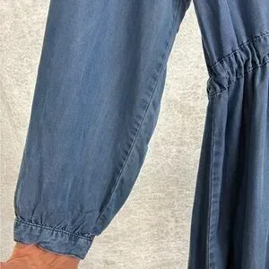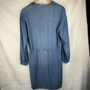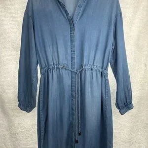 a.n.d easy Chambray Shirt Dress Light Blue Drawstring Waist Size L