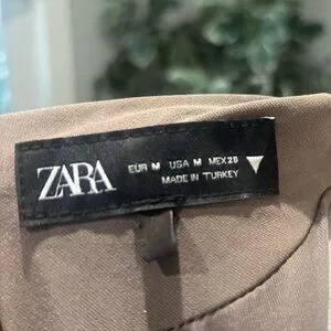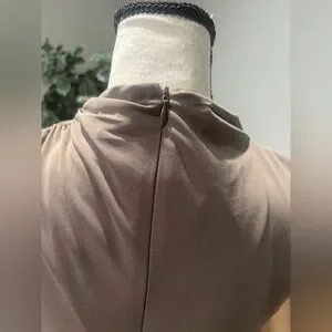 Zara Sleeveless Mock Neck Ruched Maxi Dress in Taupe Size:M