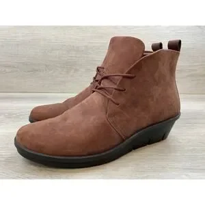 ECCO Women's Boots Hydromax Brown Nubuck Leather Wedge Lace Up Ankle 9-9.5