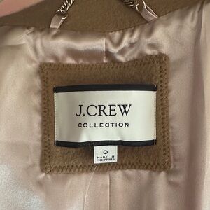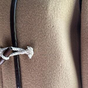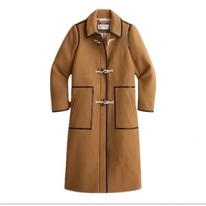NWT. This item is a J.Crew Collection toggle coat in Italian fall blanket wool, featuring a soft brown color, standing collar, and faux-leather trim. Sz 0. There are a few moth blemishes that I’ve included in pics.