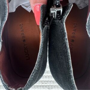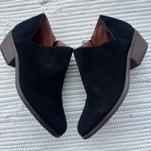 Lucky Brand Fenley Bootie Black Suede Cutout Ankle Heel 8M