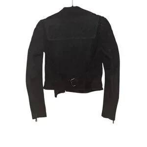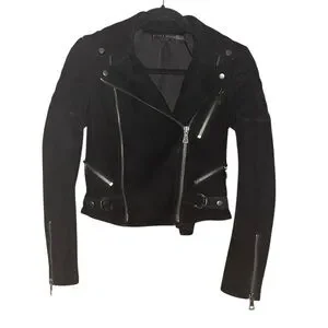 Alice + Olivia Miles Genuine Goat Suede Leather Quilted Zip Moto Jacket Black