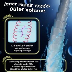 The K18 AstroLift Reparative Volume Spray, designed to add volume and repair hair, and the K18 Leave-In Molecular Repair Hair Mask. K18 Biomimetic Hairscience: the AstroLift™ Reparative Volume Spray and the Leave-In Molecular Repair Hair Mask. These products are designed to repair hair damage while providing styling benefits like volume and bounce.