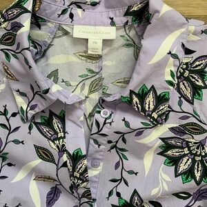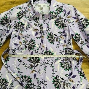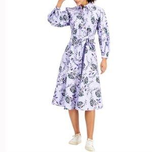 CHARTER CLUB Lavender Fields Floral Long Sleeve Belted Button Down Shirt Dress