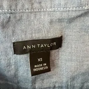 ANN TAYLOR Womens Linen Blend Tie Front Button Down Chambray Top Size XS