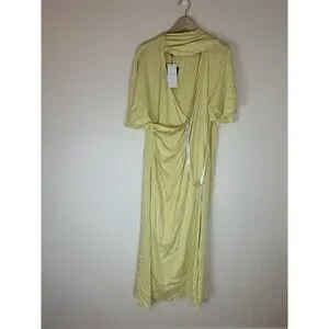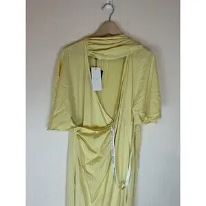 Club L London 12 L Satin Dress Yellow Lemon Lisette Maxi Flutter Sleeve Wrap