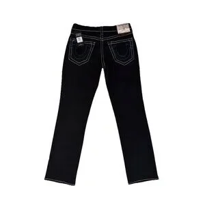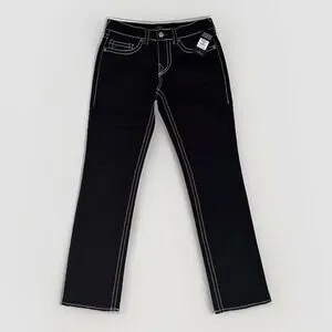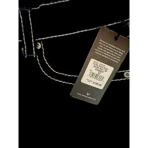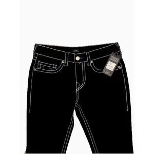 True Religion Jeans Men's Black Ricky Big T Blue Stitch Straight Denim NWT
