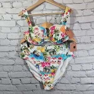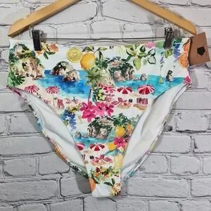 Shade And Shore Bikini Womens Sz XL 36DD Coastal Print Cheeky High-Waist New
