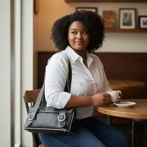In excellent condition this is a fun shoulder bag featuring white stitching and white piping dual shoulder straps with silver tone circular bracelet made in early to mid 2000’s