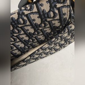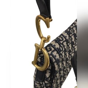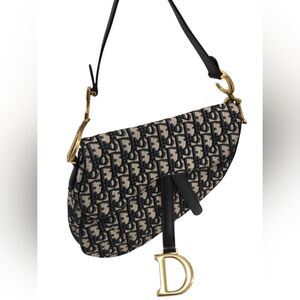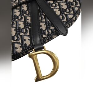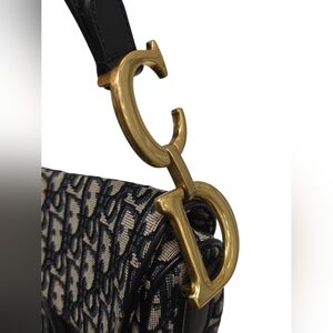 The iconic and legendary Saddle bag is crafted in blue Dior Oblique jacquard. It features a Saddle flap with a D stirrup strap and magnetic pull, as well as an antique gold-finish metal CD signature on either side of the top handle.
