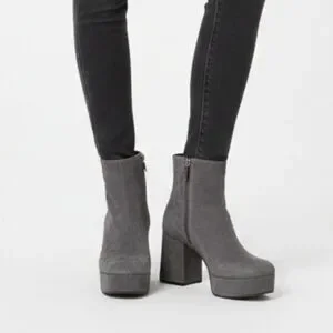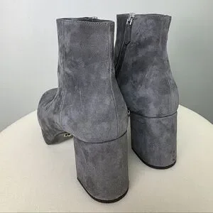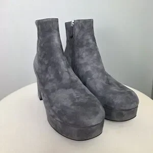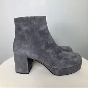 PRADA Grey Suede Platform Retro Block Chunky Heel Ankle Bootie Round Toe 38