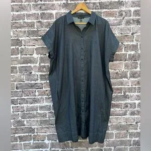 Eileen Fisher size 2X denim organic cotton twill shirt dress