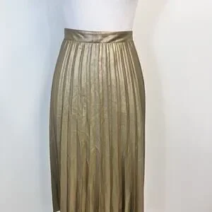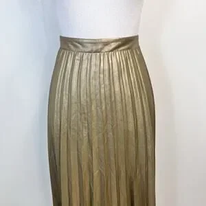 Ann Taylor Skirt size 14 Gold Shimmery Pleated Wedding Evening Cocktail Modest