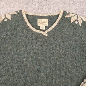 Vintage Woolrich Sweater Womens S Green Nordic Snowflake Wool USA Outdoor Knit