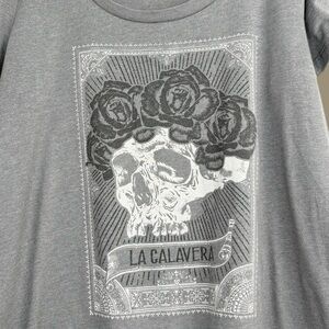 Torrid Graphic Tee Sz 12 La Calavera Skull Rose T-shirt Gray Dia de los Muertos Goth