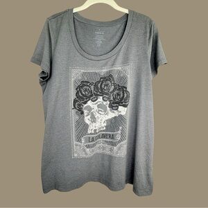 Torrid Graphic Tee Sz 0 La Calavera Skull Rose Gray Dia de los Muertos Goth