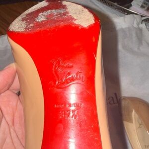 Christian Louboutin Beige Patent Leather Pointed Toe Pumps