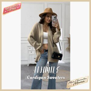 Oversized Chunky Knit Cardigan Sweater Open Front with Pockets Y2K Chic