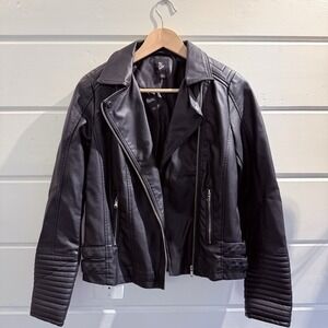 Art Class Faux Leather Black Moto Jacket zip up motorcycle biker coat Size XL