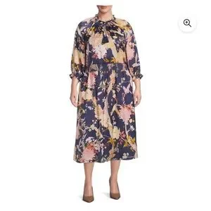 Terra & Sky Plus Size Navy Peasant Midi Dress size 4x NWT