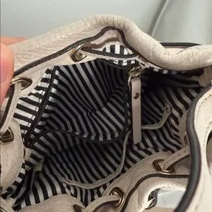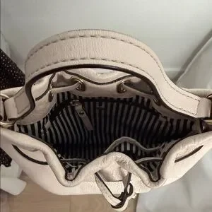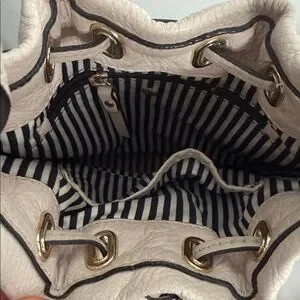 Kate Spade Pebbled Leather Drawstring Bucket Bag in Light Beige/White