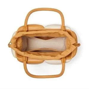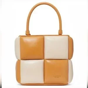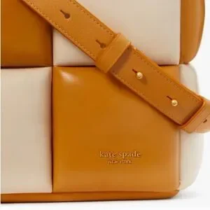 Elegant Kate Spade shoulder bag with a two-tone design. Features tan and cream panels. Perfect for elevating any look.