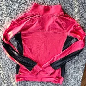 Hot pink pullover with quarter-zip. Black details on sleeves. Perfect for everyday comfort.