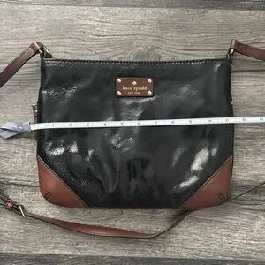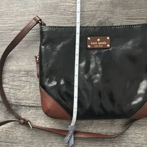 KATE SPADE Black Patent Leather w/Brown Leather Cross-Body Strap Shoulder Bag