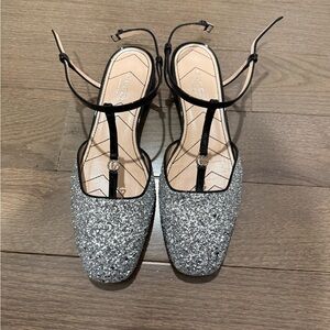 Step out in style with these dazzling Gucci women's shoes. Featuring a glittery silver finish and elegant T-strap design, these shoes are perfect for any occasion. Size 6.5 worn once.