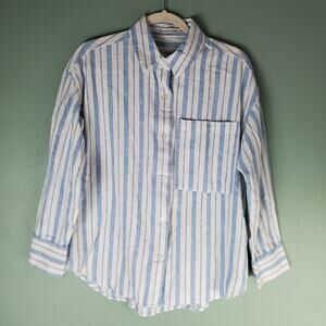 Abercrombie & Fitch Womens Blue White Striped Oversized Linen Blend Button Up Long Sleeve Shirt Size Small