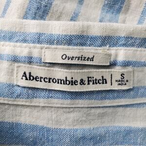 Abercrombie & Fitch Womens Blue White Striped Oversized Linen Shirt Size Small