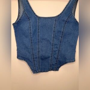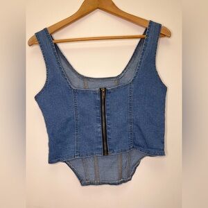 Denim Corset Top Medium Blue Wash Structured Bustier Tank Y2K Trend