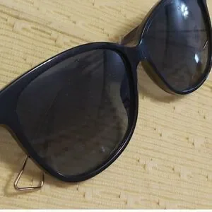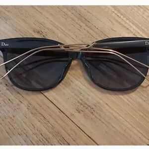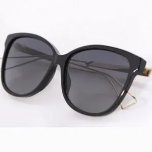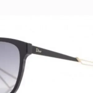 These Dior Confident 2 sunglasses feature a striking oversized butterfly shape with glossy black frames and elegant gold accents on the temples, offering a sophisticated blend of modern and retro style.