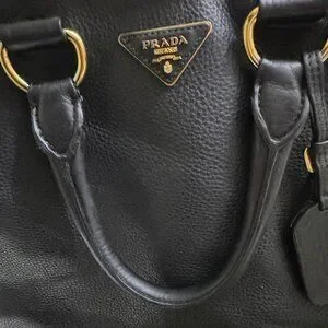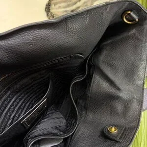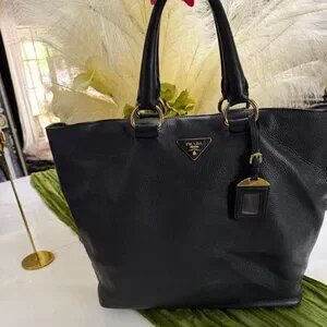 Prada Black Leather Tote Bag Large Shoulder Bag Gold Hardware Authentic