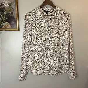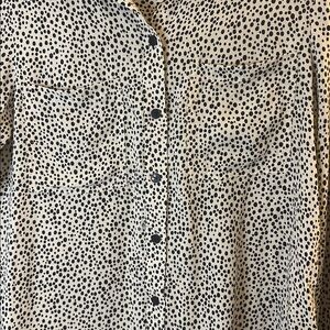 Sanctuary Polka Dot Button Down Blouse XS Black & Cream Rayon Lightweight Chic