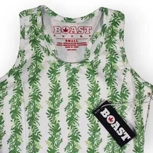 Mini tennis dress with racerback- would be a great beach summer vacation dress too! It is lined, but light can shine through it - green vines with climbing daisies and tennis rackets! - Boast maple leaf logo embroidered at bottom left hem - I have multiples of this dress in size small only