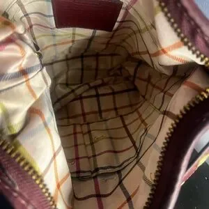 Needs TLC-2007 Bleecker with Tattersall fabric lining; original Coach hang tag. Leather has dark marks on it. It does look like it may have been stained. The inside has been cleaned, but still has some stains. The strap also has a dark mark on it—on the underside. Item is selling AS IS and does need some rehab. Please see all of the items pictures as they’re part of the description.