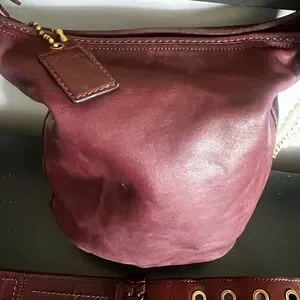 COACH REHAB Bleecker Burgundy Tattersall Leather Crossbody Bag