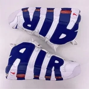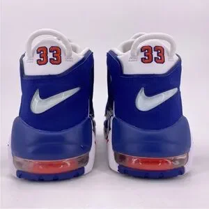 This Nike Air More Uptempo is known as the "Knicks" edition. They come in a New York-inspired white, deep royal blue and team orange colorway. Sporting a white-based leather upper with royal blue accents and hits of orange found on the branding throughout as well as the visible Max Air unit. The number "33" is found embroidered on the back heels, made to pay tribute to Knicks legend Patrick Ewing, a long-time rival of Scottie Pippen and the Chicago Bulls throughout the 90s. Their release date was September 1st, 2017.