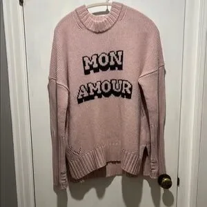 Zadig & Voltaire Alma turtleneck sweater. Mon Amour graphic. Thumb slots at wrists. Minor pilling, no stains or holes.