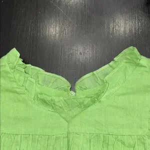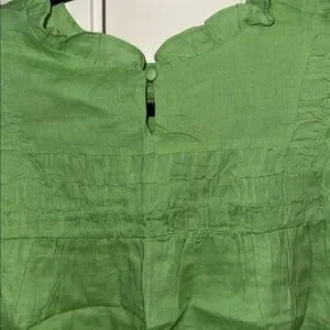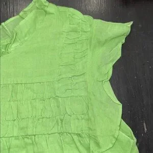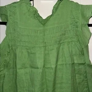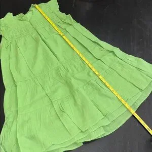 roolee light weight cotton green dress. size small. flutter sleeves. tired skirt. fully lined.NEW with tags.