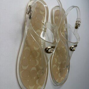 Coach Clear Jelly Sandals Size 9 Women’s Transparent Thong Flip Flops Gold Logo