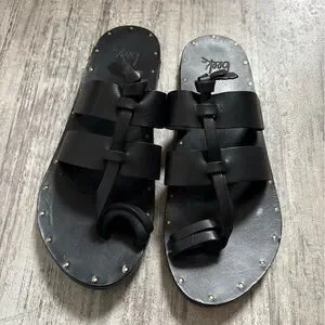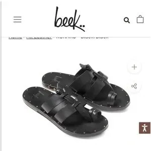 Elegant black leather slide gladiator style studded sandals by Beek. Super stylish for elevated summer looks. A little bit of wear on the bottom but not noticeable from the top. Women's size 9. Offers welcome! :)