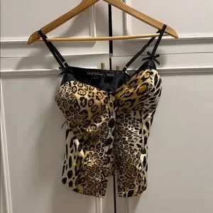 Guess Leopard Print Satin Corset Cami in Gold and Black