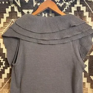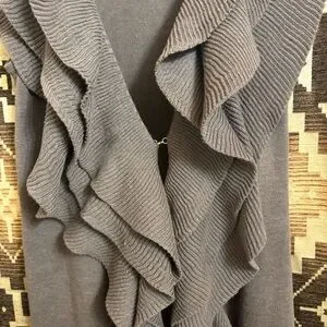Dressbarn Gray Ruffle Vest Size Medium, Cotton Blend