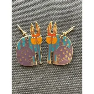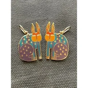 vintage Laurel Burch "Rabbit for Ross" dangle Enamel Earrings Estate Costume