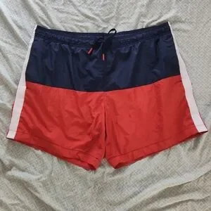 H&M Men's Red and Navy Colorblock Swim Shorts XL