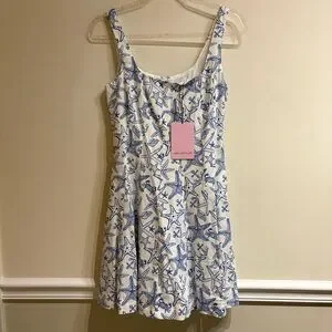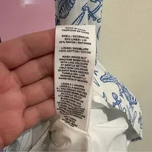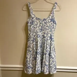 Tags: Nautical Dress, Starfish Print, Anchor, Sea Life, Linen Blend, Fit and Flare, Mini Dress, Size 2, NWT, New With Tags, Coastal Grandmother, Mermaidcore, Hamptons Style, Yacht Club, Preppy, Summer Vacation, Resortwear, Beachy, Tropical, Pockets, Breathable, Natural Fiber, Blue and White, Classic, Crisp, Brunch Dress, Garden Party, Coastal, Beachy