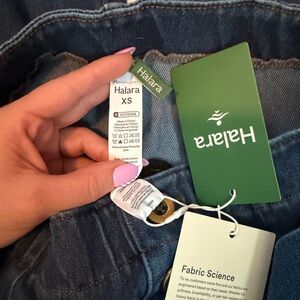 HALARA Dark Blue High-Rise Wide Leg Jeans with Front Patch Pockets