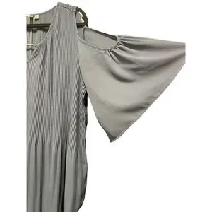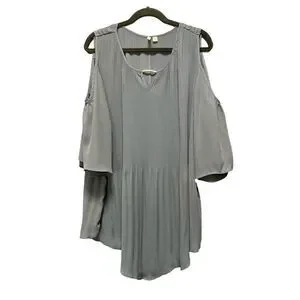 Cato grey cold shoulder lampshade pleated blouse high low